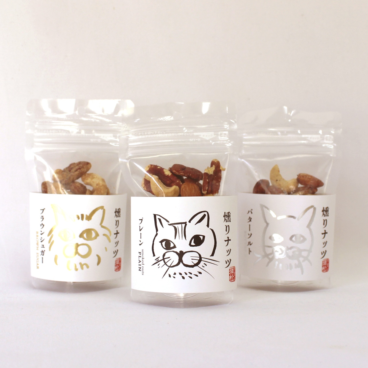 タイトルの通り、燻製屋猫松の定番商品《燻りナッツ|ミニサイズ》3種類のパッケージが新しくなりました👏